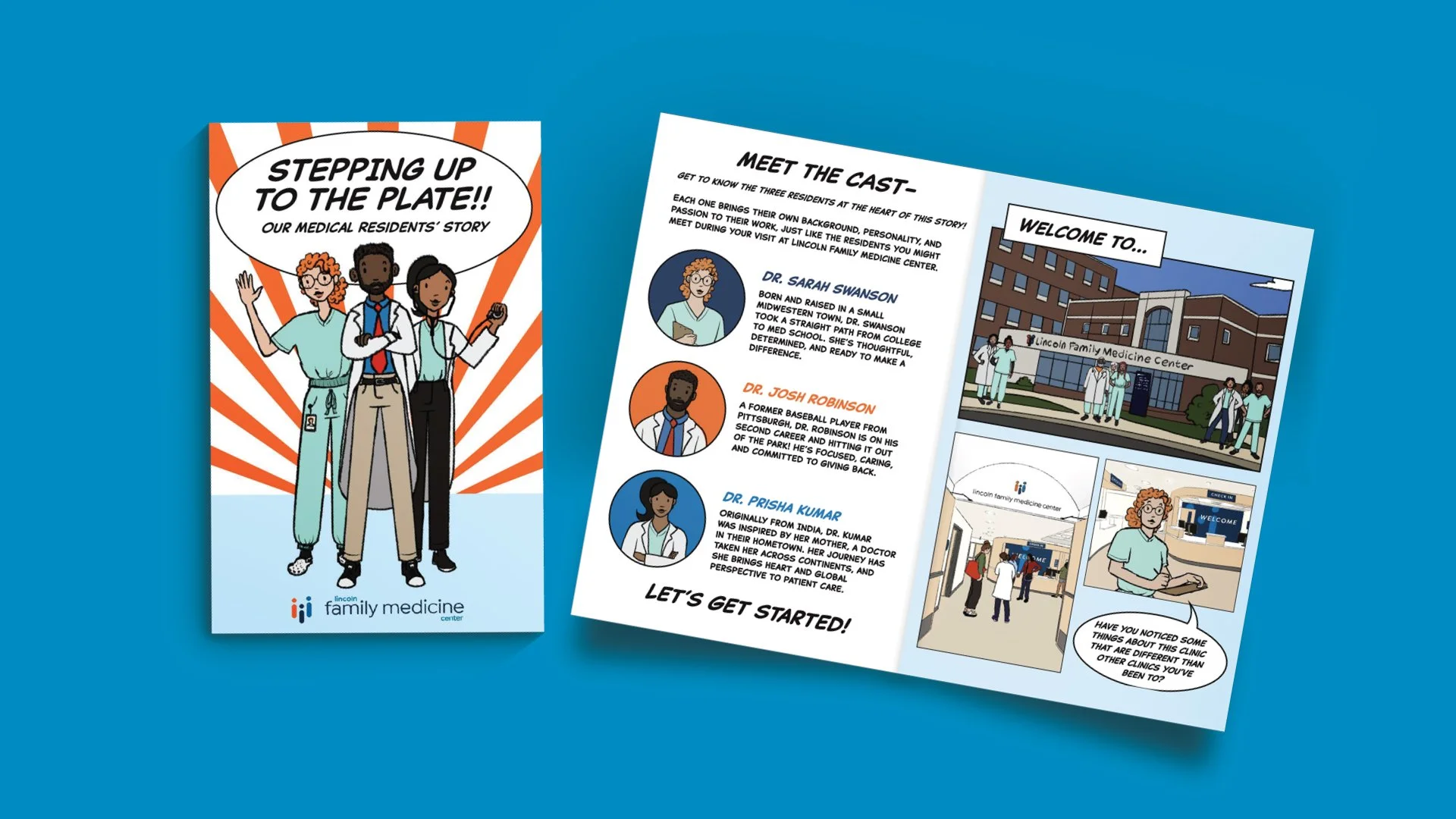 Using a baseball theme and visual storytelling, Stepping Up To The Plate follows three resident physicians, from their journey to going to medical school, to their arrival in Lincoln for residency training, to their role in caring for patients at the clinic. The story highlights how physicians work together as a team, even when they aren’t able to see the same patients every time, and the trust they place in one another to provide exceptional care.